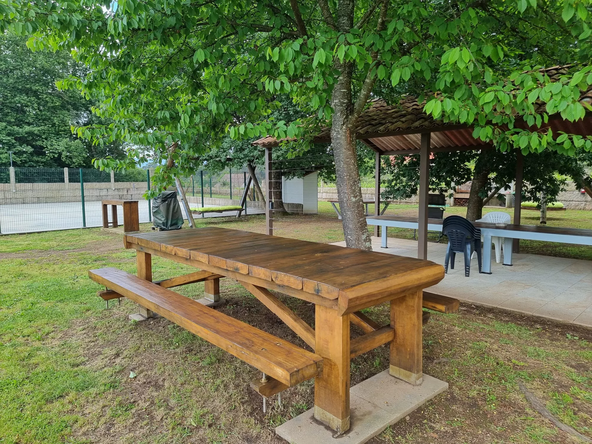 4000m² completamente cerrados, Piscina, Deportes, Parque con Arenero, Baño con Ducha, Barbacoa, Cenador Cubierto, Cama Balinesa, Chill out con Fogón.